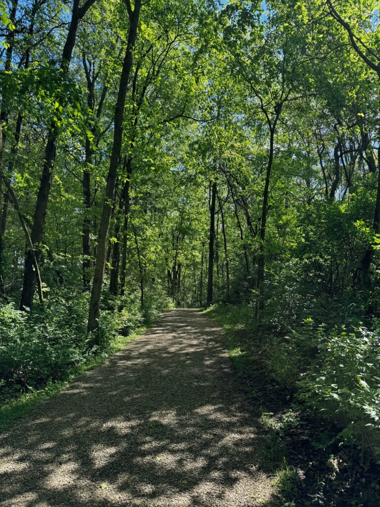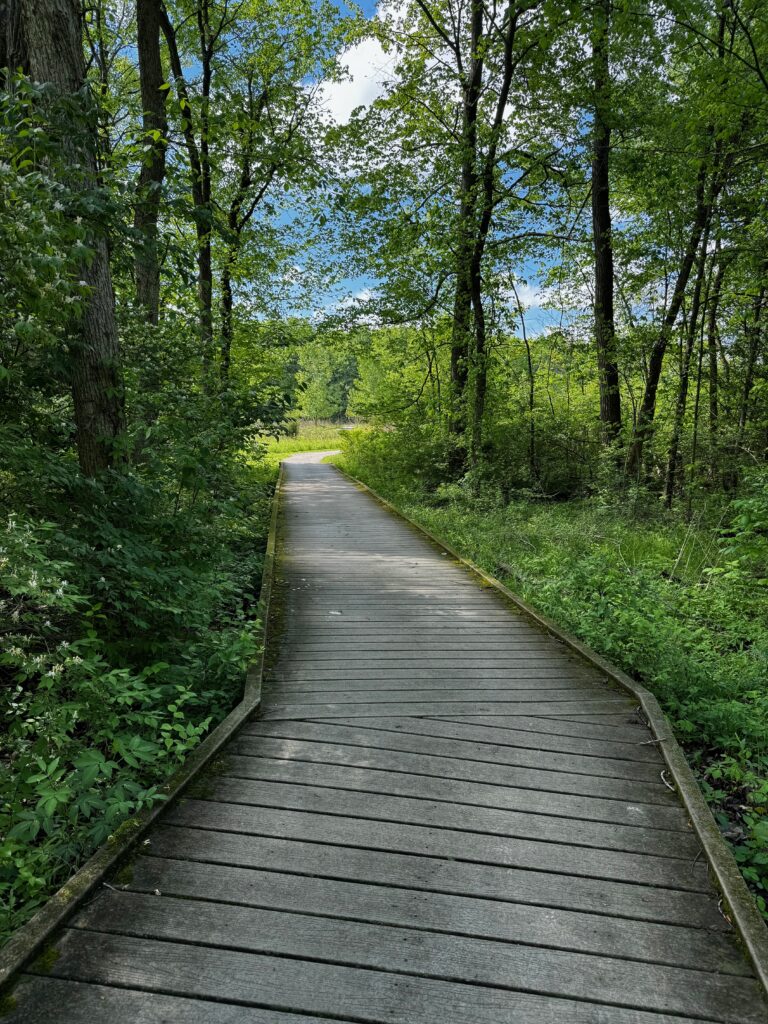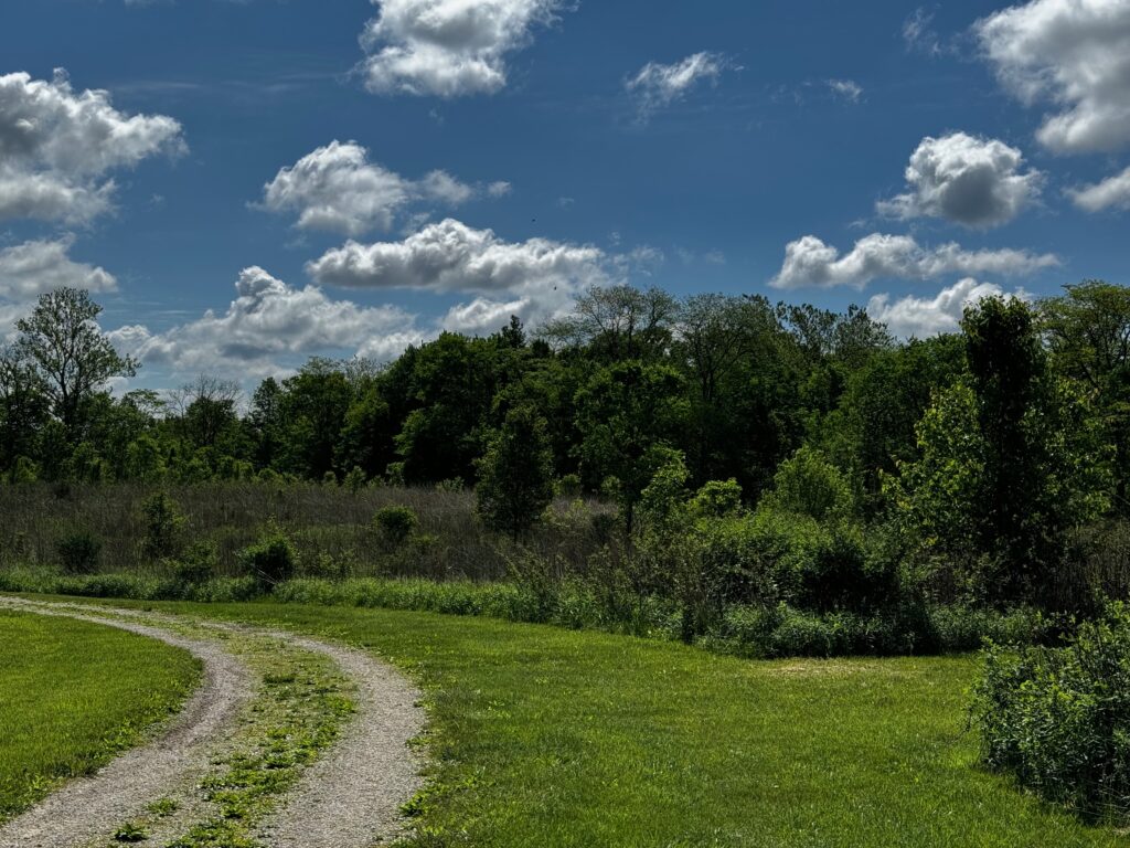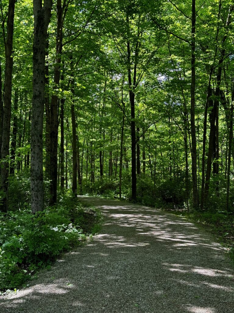 I started by heading back to a favorite spot for walking on a nice trail through woods, Deer Haven Park near Delaware OH (north of Columbus). Even though the morning started off dreary with threats of rain, the day was lovely by the time I got to the park and headed down the trail. Deer Haven Park’s trails are well-kept and were mostly dry even though there was lots of water right up to the edge of the trail in many places. It’s a perfect time of year to visit even though many of the flowers aren’t out yet.