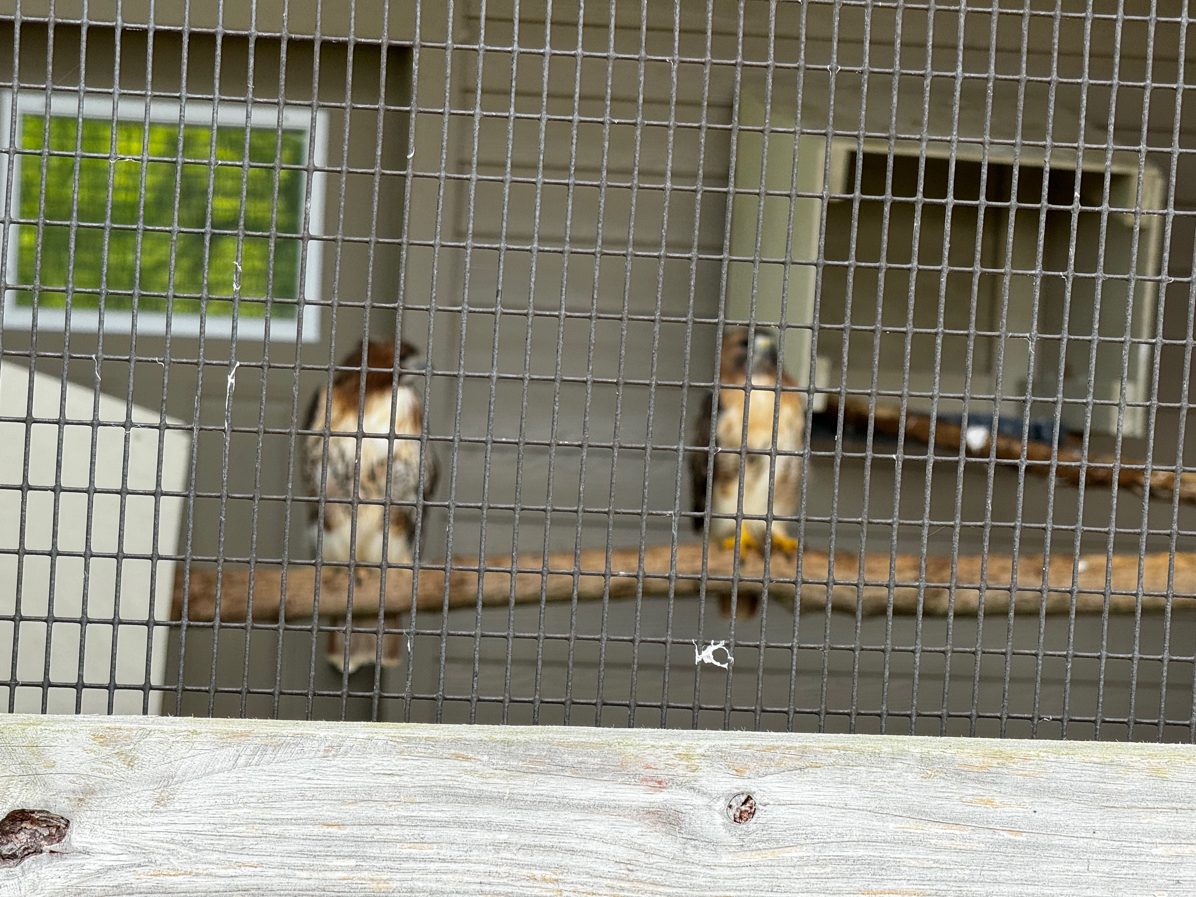 There is a small aviary next to the Visitor’s Center and this time there were two Red Tail Hawks, two Red Shoulder Hawks, and two Turkey Vultures. I hoped that all the birds were rescues that will be able to be released back in the wild soon. Here are the two Red Tails; it’s just unfortunate that my phone’s camera refuses to focus on the birds in the distance rather than on the wire in the foreground.