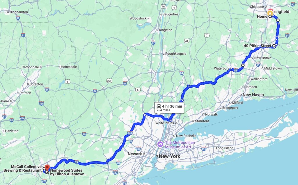 Today being a Sunday, I started with the usual backroads drive to the church in Manchester CT where I play organ, then headed out after the service for Allentown PA.