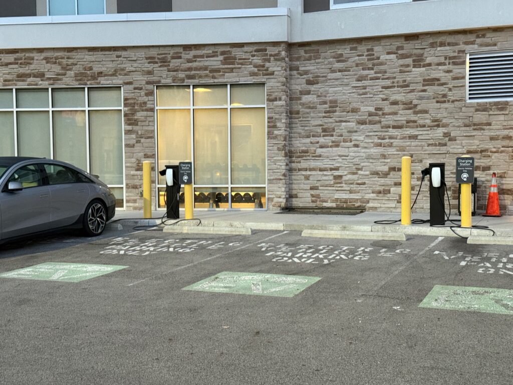 Since I forgot to show you my hotel’s EV chargers yesterday evening, here they are — 2 NACS ports and 2 J-1772. Both J-1772 plugs were in use last night but there were no Teslas charging this time.