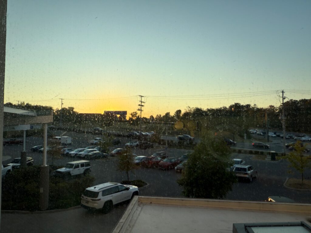 The morning was clear and it was 62º when I left the hotel at 8:30am. This was the photo of sunrise from my hotel room, taken through the very dirty window: