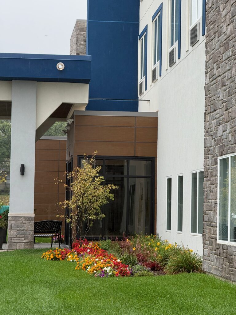 Before talking about today’s drive, I wanted to share this photo of the garden outside the main entrance to last night’s hotel, the very new Hampton Inn in Saline MI.