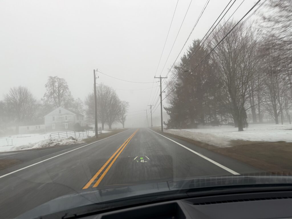 I had to play for church in Manchester CT so I headed there on the usual backroads route this morning with the temps at 46ยบ and plenty of heavy fog. This isn’t the worst of it but this will give you a small idea of what the world looked like at the beginning of my day: