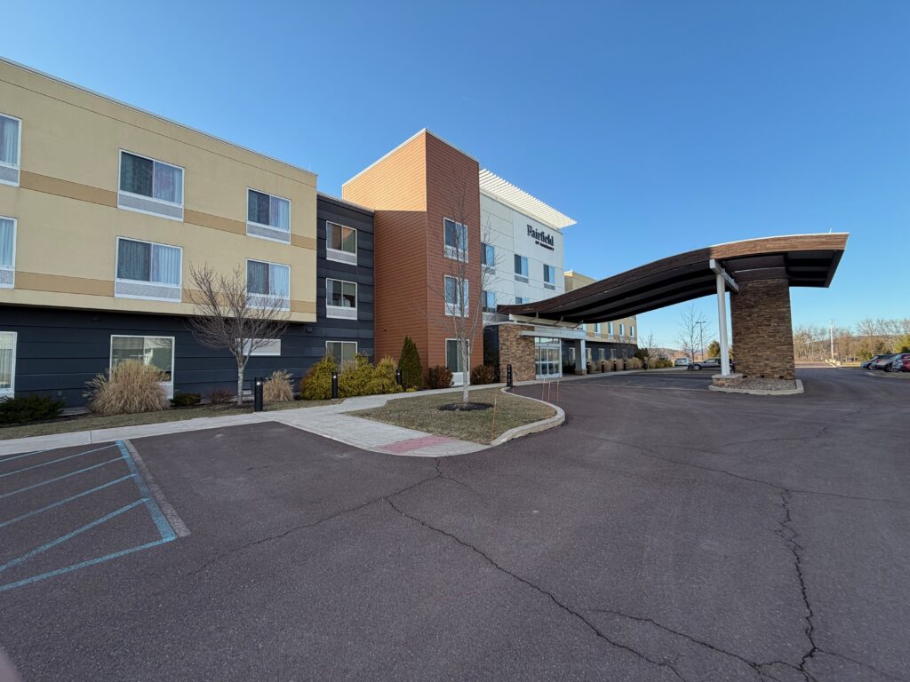 The last leg of the trip was just 23 miles on back roads to Bloomsburg where I ate and am staying tonight, at an efficiency of 3.8 miles/kWh (yay!). My hotel is a fairly new Fairfield Inn & Suites that amazingly has SIX free EV chargers, 4 Tesla destination chargers delivering 8.2kW and 2 J-1772 plugs. This is particularly nice because I’ll be at 100% when I leave in the morning.