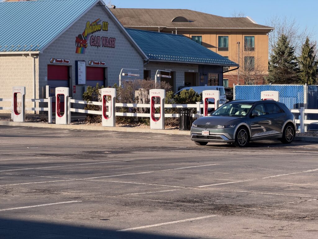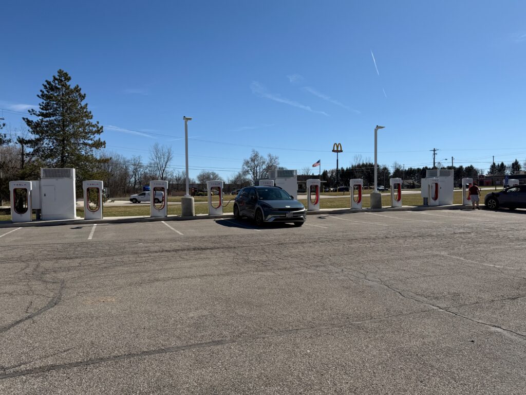 On the way to my hotel, I opted to swing by an EVgo charger (at a Target) even though it was expensive, just to complete my first charging session with the new car so that if I need one again, it will be just plug-and-charge without having to use the app. This location — which I forgot to get a photo of — has three units, one with 2 NACS plugs and the other two with 2 CCS1 plugs each. There was one car at a CCS1; I pulled into a NACS spot and a Tesla pulled in right after so we were splitting the 350kW charger — I got the max available from my half, 175 kW, charging from 42-80% in 14 minutes. If only he hadn’t arrived, I would have enjoyed a much faster speed. But I was pleased to see right before I disconnected that I was still pulling 110 kW at 79% whereas he was only getting 80 kW at 60%. Yay, Hyundai!!